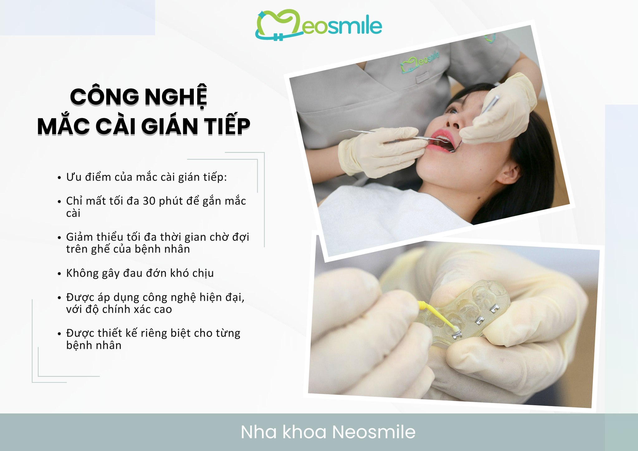 Với định hướng phát triển theo tiêu chuẩn Nhật Bản, NeoSmile luôn đề cao sự chỉn chu, tôn trọng cảm nhận của khách hàng và tinh thần cầu thị trong từng chi tiết nhỏ. Chúng tôi không ngừng rà soát, điều chỉnh và nâng cao trải nghiệm, nhằm đảm bảo khách hàng không chỉ an tâm về kết quả điều trị, mà còn cảm thấy thoải mái, được thấu hiểu và đồng hành trong suốt quá trình chăm sóc răng miệng.