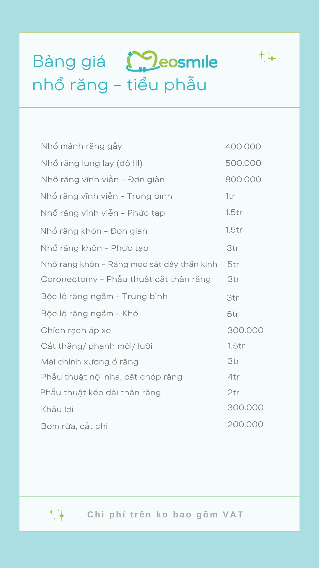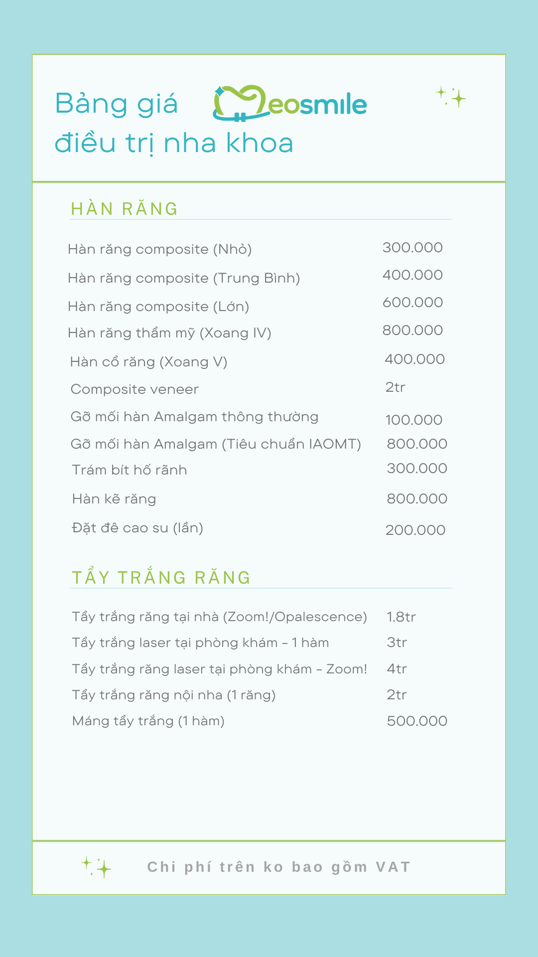 Bảng giá điều trị nha khoa tại Neosmile, bảng giá này luôn luôn cố định ...