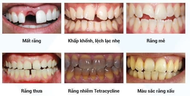 Bọc răng sứ thẩm mỹ được áp dụng cho nhiều trường hợp khác nhau: